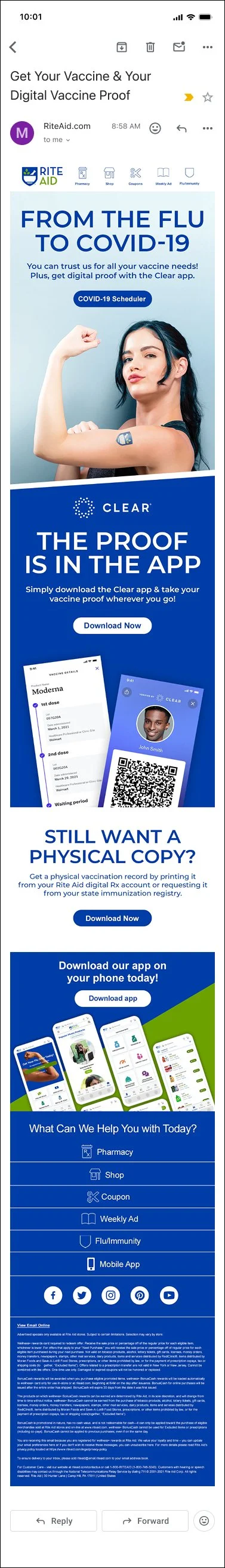 Deliverables included email blasts, email banners, landing page banners, and social media posts, designed to communicate and help customers access vaccination information and options.