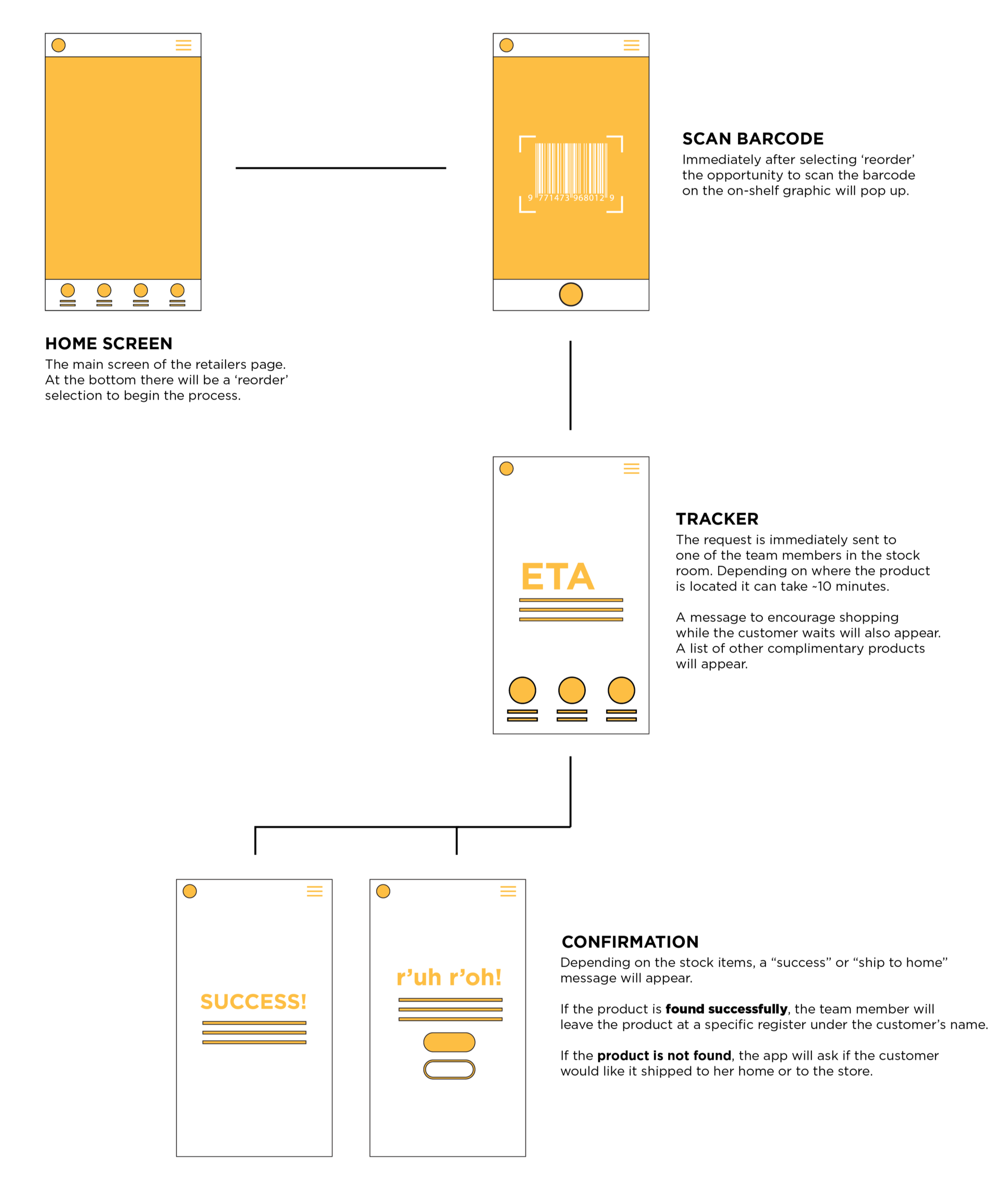 Customizable shelf graphic that prompts customers to use the retailer's app to request backroom associates to check their stock for possible "out of stock" items. Not only would this keep customers in the store longer as they browsed